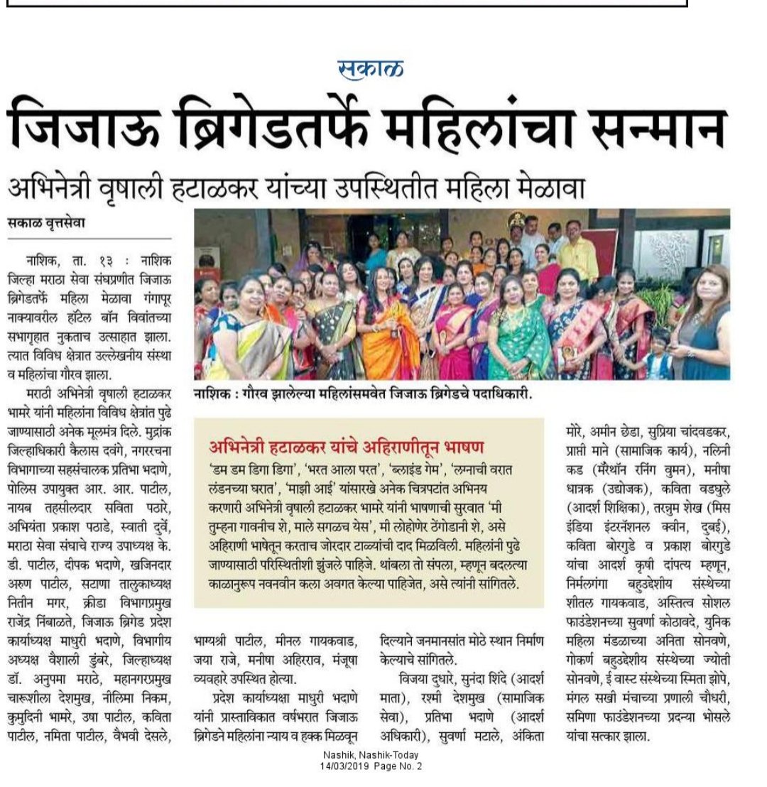 जिजाऊ ब्रिगेडच्या कार्याची दखल घेणाऱ्या वृत्तपत्रे, चॅनेल्स आणि माध्यमांप्रती कृतज्ञता.